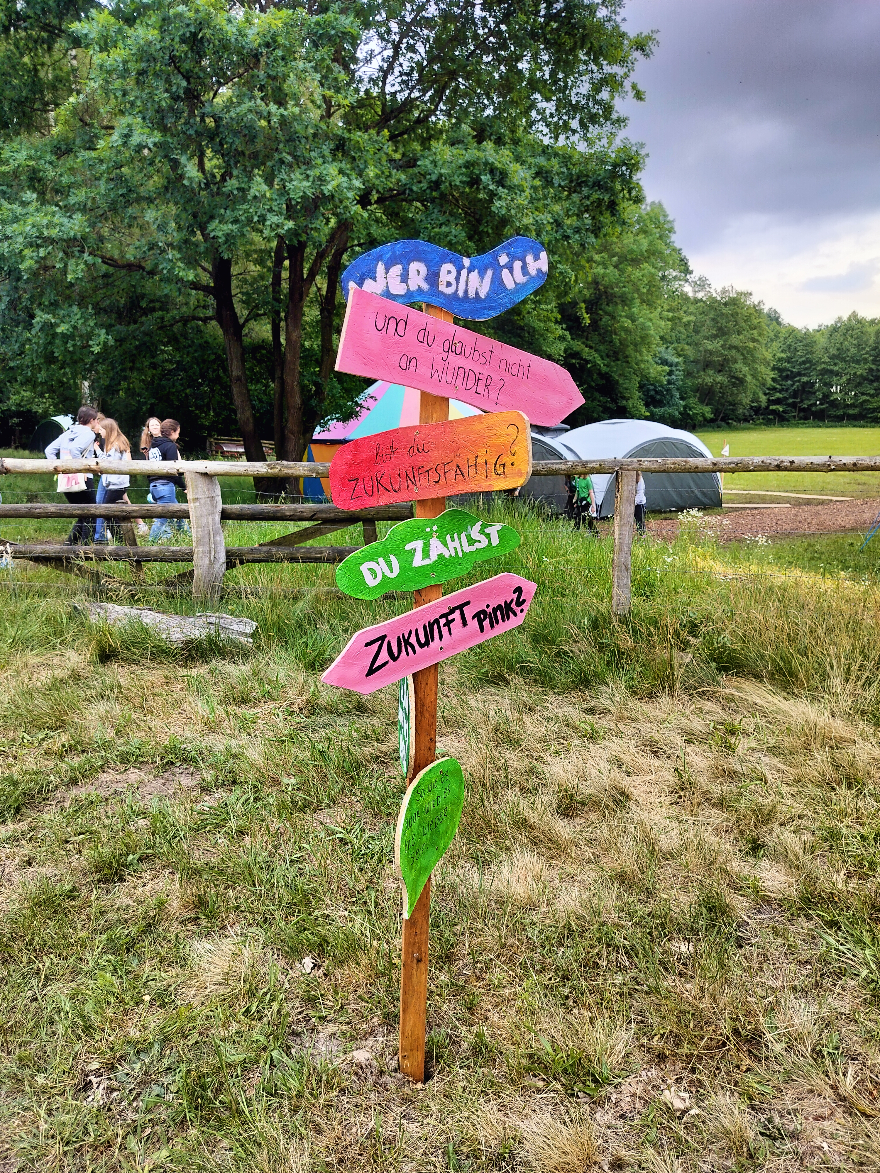 Bereits Anfang des Jahres wurden Notfallpläne geschmiedet, für den Fall, dass unsere Campwiese zu nass sein wird. Doch eine Woche vor dem Camp erhielten wir die frohe Botschaft: Die Wiese ist weitgehend trocken! Doch dann kam der Regen… und es war viel Regen…