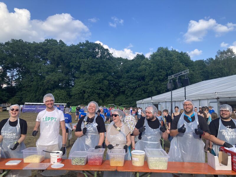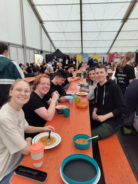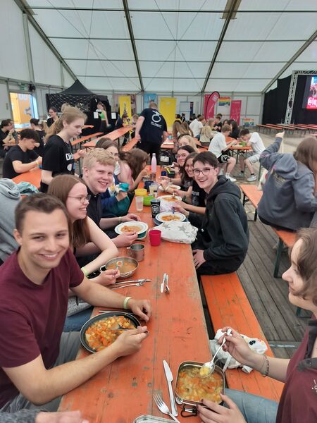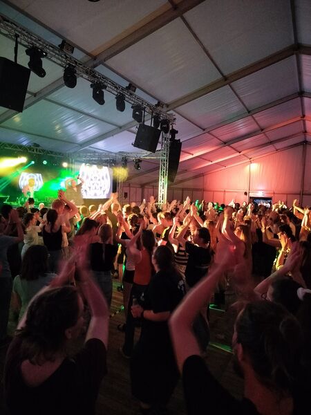 Wir haben gemeinsam im Großzelt gegessen, Konzerte besucht, unterschiedliche Bibelarbeiten erlebt, bei der Disco und Silent Disco alles gegeben, den Enten beim schwimmen in den Pfützen zugesehen, unseren Kram bei „Bares für Rares“ eingetauscht, bei der Taizé Andacht die Stille genossen, den neusten Merch beim Bingo abgegriffen, über das Leben und den Tod gesprochen, viel zu viele Pommes gegessen, gebastelt, gemalt, und vieles vieles mehr.