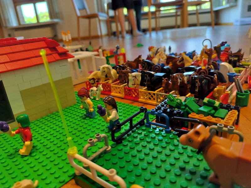 18 Kisten Lego wanderten diese Woche durch den Kirchenkreis und machten in Neukloster, Mulsum und Bargstedt Halt. Fast 50 Kinder bauten jeweils einen Vormittag fleißig riesige Containerschiffe, Häfen, Häuser, Zoos, Gefängnisse, bunte Gärten, wilde Dschungel, einen Croissantgrill und Vieles mehr. Gestartet sind wir in den Tag mit einem Lied und einer Geschichte aus der Bibel in der Jesus seinen Zuhörerinnen und Zuhören erzählt, wie groß Gottes Liebe zu uns Menschen ist.
