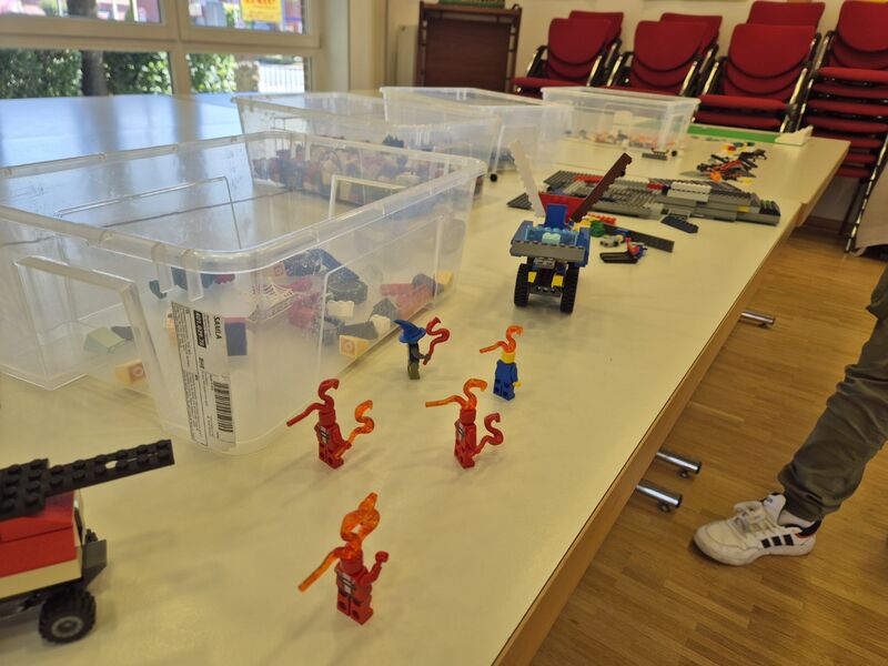 Am Samstag, Montag und Dienstag wurde fleißig gebaut auf der Lego-Baustelle. Kistenweise Lego stand zur Verfügung, mit dem die Kinder kreativ werden konnten. Dabei sind kreative, wunderschöne, verspielte, große, kleine, bewegliche und manchmal auch verrückte Bauwerke herausgekommen.
